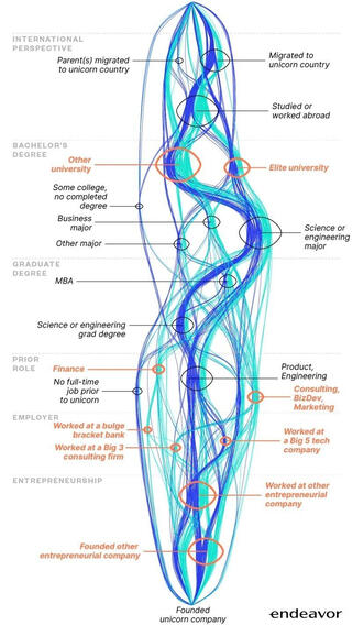 Unicorn founders did not go to business school, nor did they work at McKinsey. Instead, they were less career-oriented global citizens who typically worked in a startup before they became founders.On average, they had 10 years of work experience prior to founding, mostly within product & engineering, and they almost always lived, worked or studied abroad.